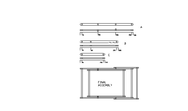 This is what you do Sew a 5mm hem all round the cotton material. Fold over 10mm along each of the short edges and sew down thus forming a tube at each end. Tape together each of the pairs of strips and sand the ends round. Using a 6mm bit drill the holes centrally as shown in the drawings. The strips should still be taped together at this point as any small inaccuracies will not mater if both halves are the same. Make a small mark on the bottom of each piece so that they can be matched later. Cut the notches as shown in pieces B) Glue the 4 pieces G) into 2 pieces A) Glue the 2 dowels E) into each end of 1 piece A) Thread the upper of these through one of the tubesin H) Glue the remaining A) onto the 2 dowel ends E) Glue 2 dowels D) into 1 piece B) Thread the dowel furthest from the notches throughthe second tube formed in H) Glue the remaining piece B) onto the 2 dowel ends D) Glue the two pieces C) onto the ends of dowel F) Make sure that every thing is square and flat and leave over night until the glue is dry. (this comment comes from experience of trying to get things to pivot with excess glue getting everywhere. It is the only a matter of assembling the parts to make the chair and if you have ever watched the performances on any British beach you will know exactly how this is done. The materials used do leave enough flexibility to bend the sides over the hinge pins. All sounds dead easy but if you can get it right first time you are a better man than me.(or the 2nd or 3rdtime)