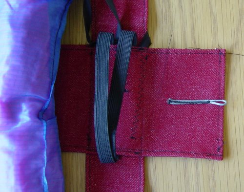 Sew this in place on the inside of the material.Make sure the elastic is the correct way round with no twists.